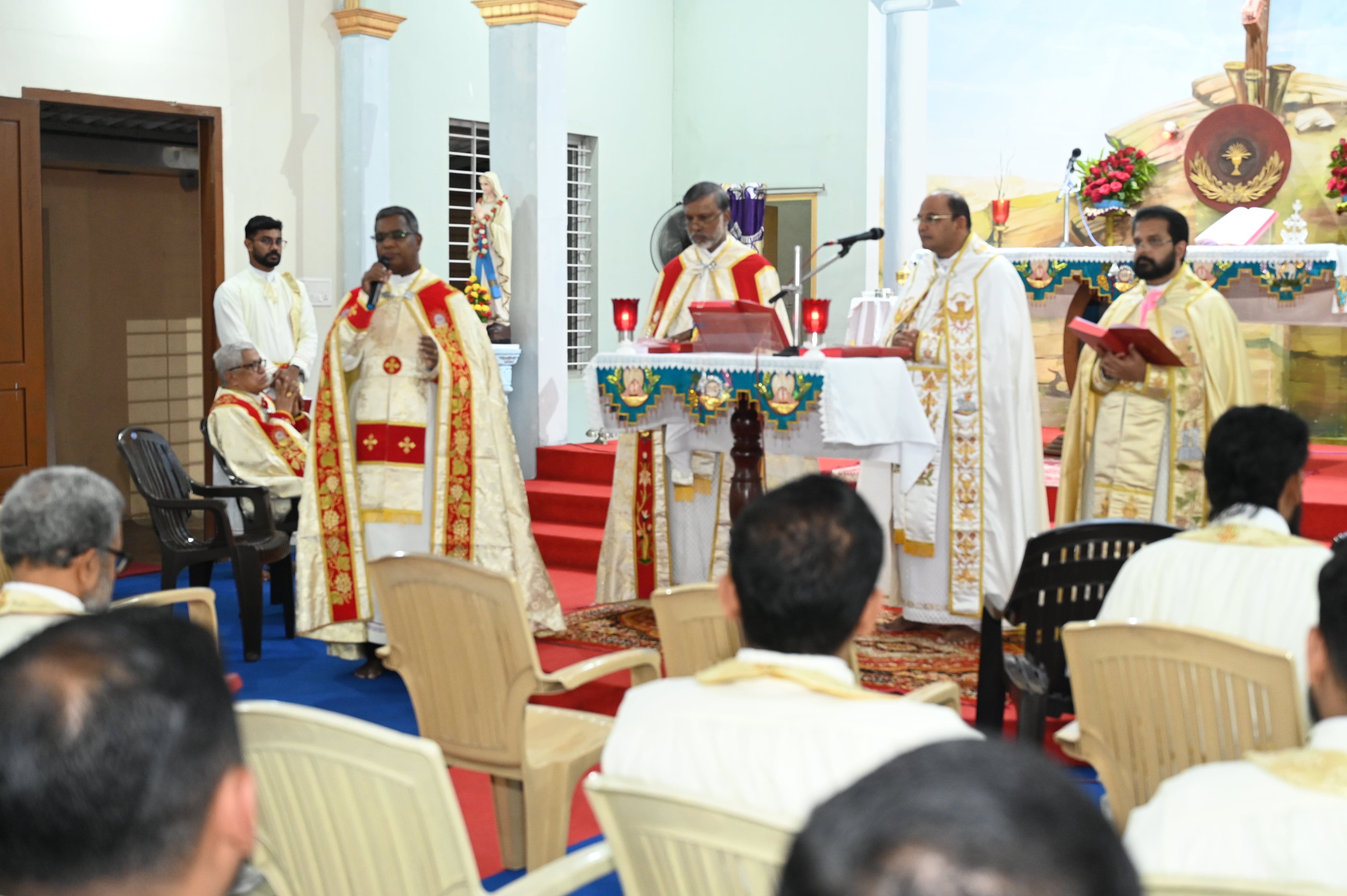 The newly revised Kannada Qurbana was celebrated with the participation of diocesan priests, representatives of religious congregations, and members of the laity. The occasion also served as a moment of remembrance and gratitude for Bishop Mar Joseph Arumachadath of Bhadravathi and Bishop Mar Sebastian Adayanthrath of Mandya, who had been instrumental in supporting this initiative from its inception.
